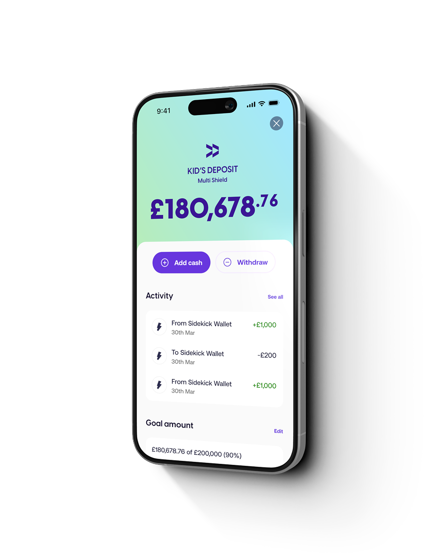 For 6 month, on balances up to £120,000, you'll earn an additional 1%, boosting the rate from 3.23% AER (variable) to 4.23% AER (variable). This bonus is paid by Sidekick within the first 2 working days of each calendar month into your Sidekick wallet. From here you can choose to add it into your Multi Shield account or withdraw it or to fund any other product we offer.